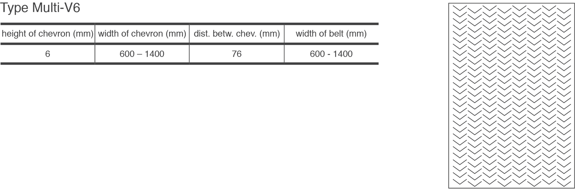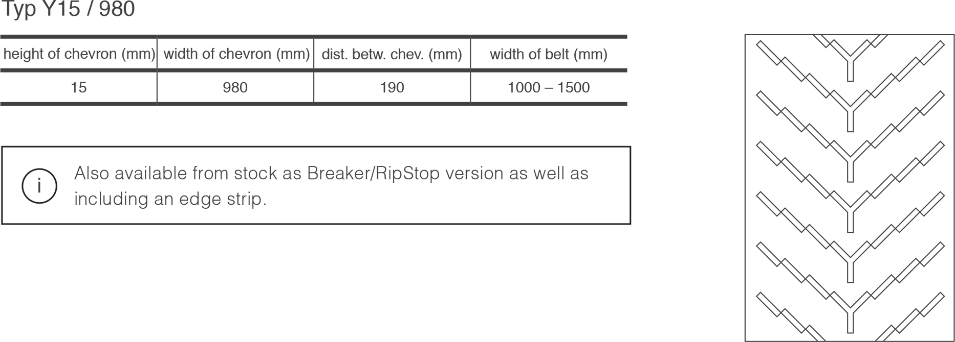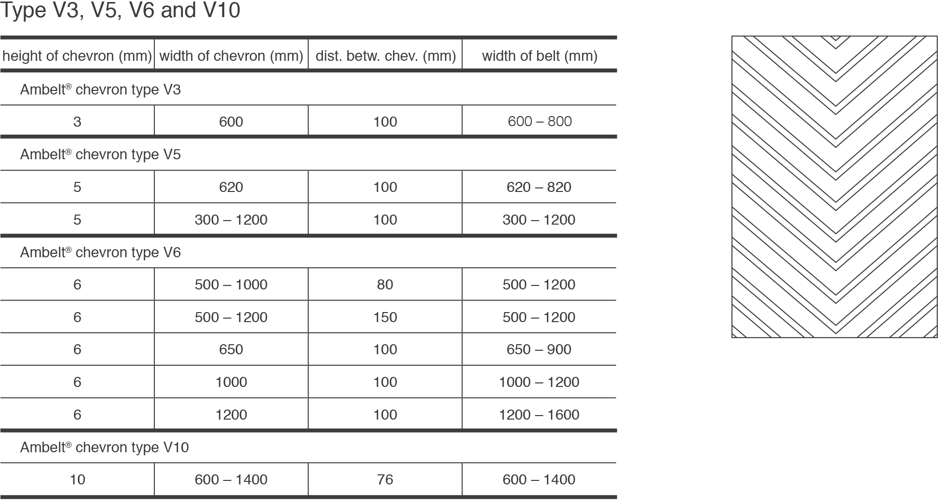 Ambelt® also provides chevron belts in RipStop/Breaker version, as well as in cross-rigid, heat resistant, flame-retardant and oil resistant quality.